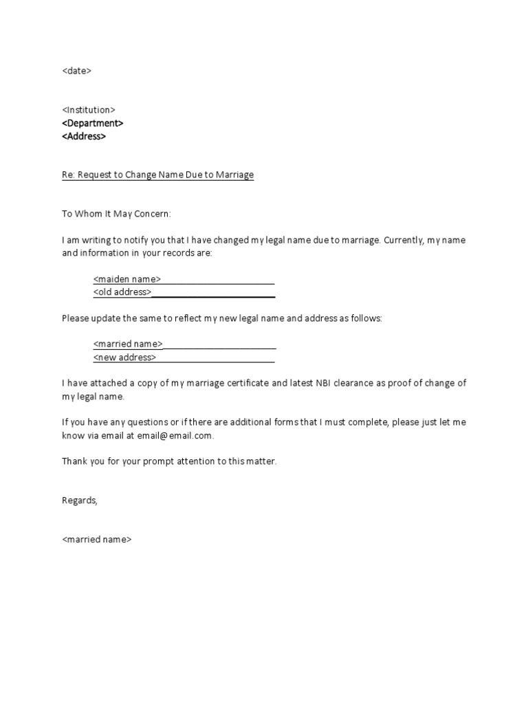 Name Change Request Letter Due To Marriage PDF