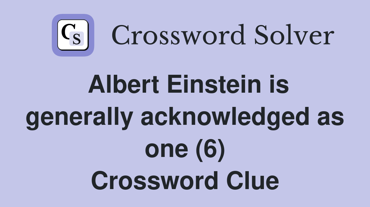 Albert Einstein is generally acknowledged as one (6) Crossword Clue