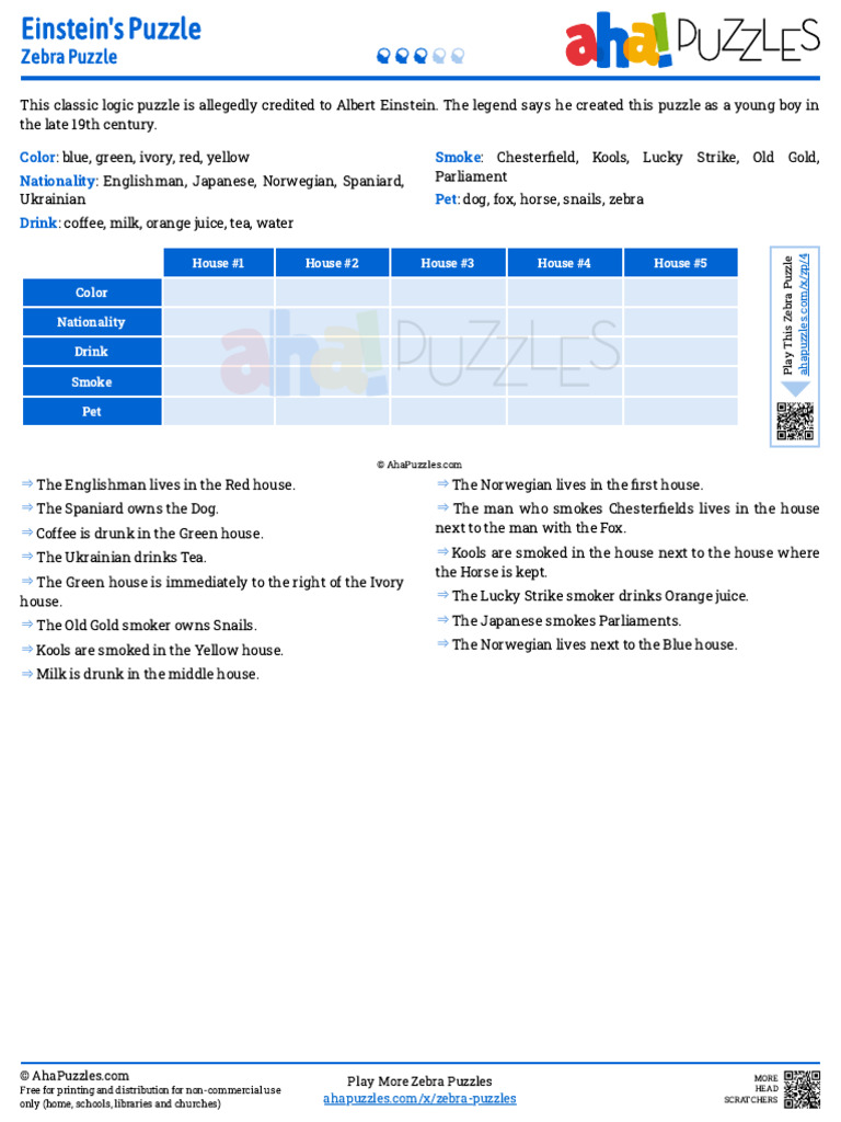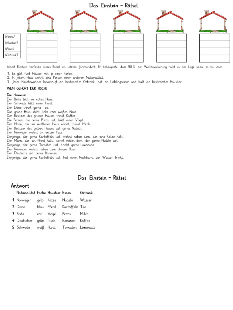 Das Einsteinrätsel (****) Rätsel mit Lösung