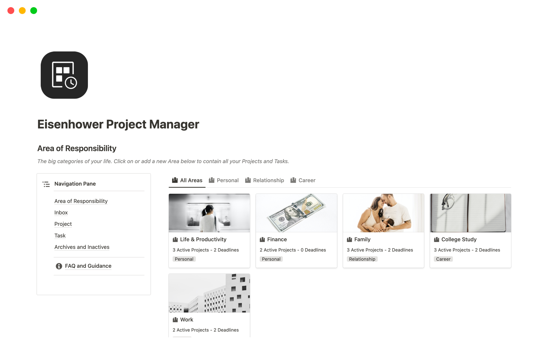 Galería de plantillas de Notion Eisenhower Matrix Notion Template