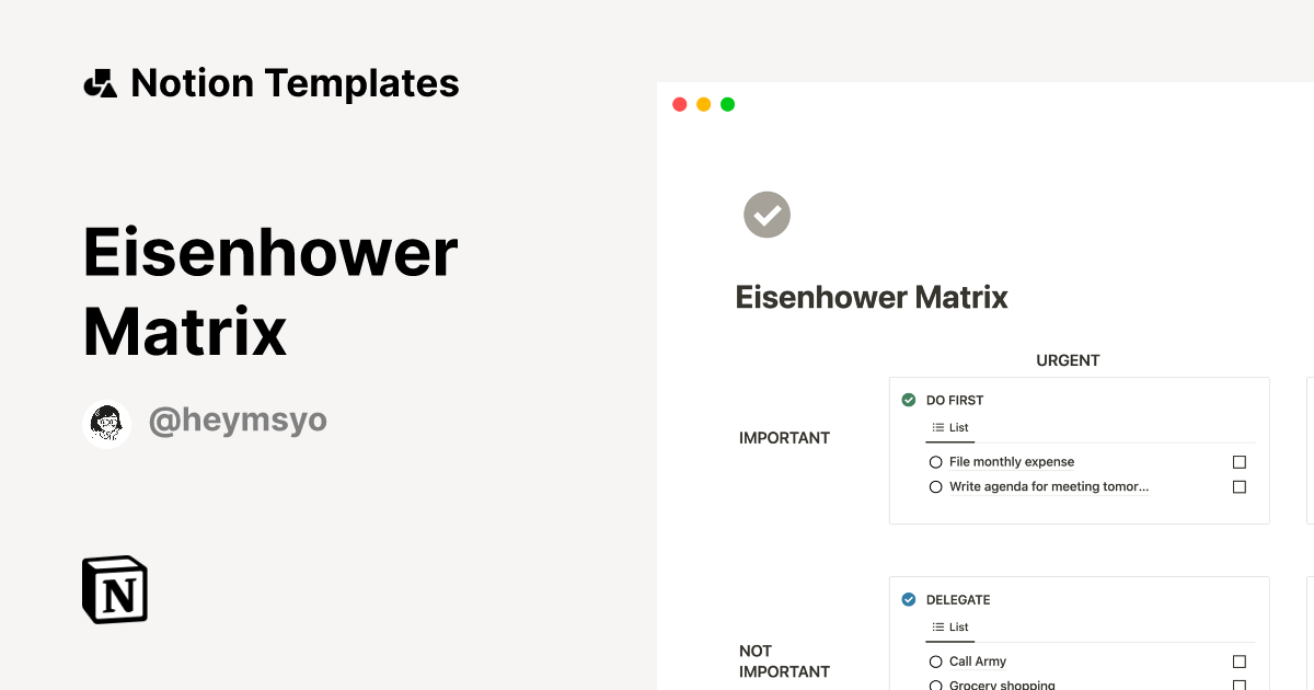The Eisenhower To Do List Template Notion Marketplace