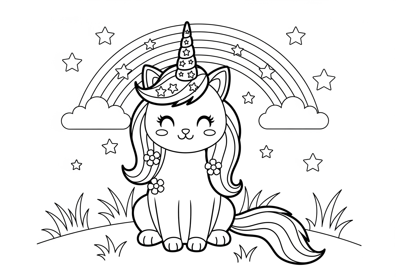 Página para colorear de un gato unicornio Descarga imprimible gratis