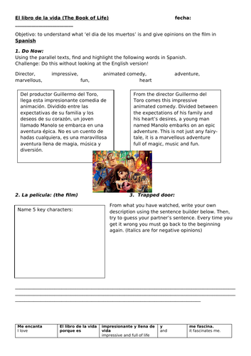 El libro de la vida (2014) KS3 Spanish Film Worksheet Teacher Copy