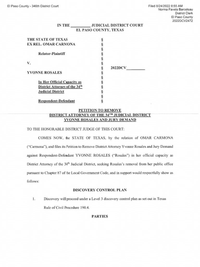 Petition To Remove El Paso County District Attorney Yvonne Rosales PDF