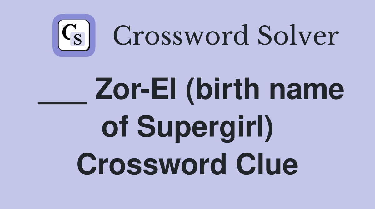 Zor El (birth name of Supergirl) Crossword Clue Answers Crossword