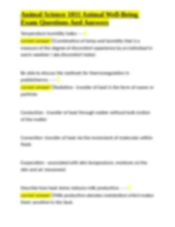 Animal Science 102 Review Questions and Answers Exams Nursing Docsity