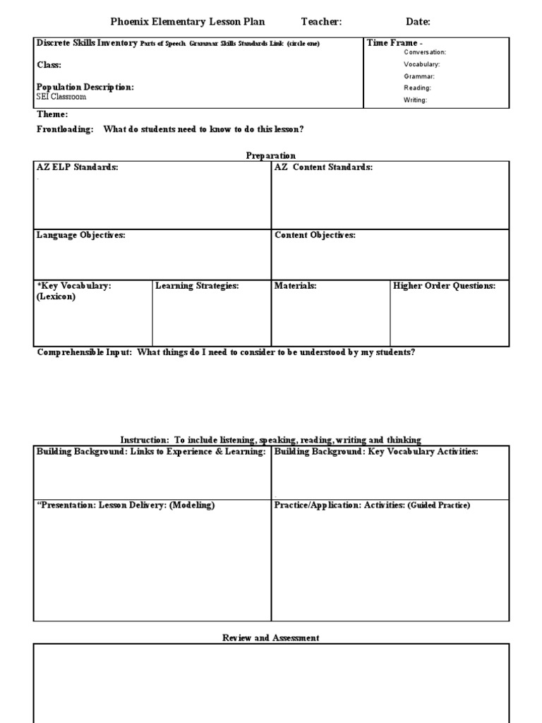 Eld Lesson Plan Template Lesson Plan Template Arizona Mcesa Reil Loi