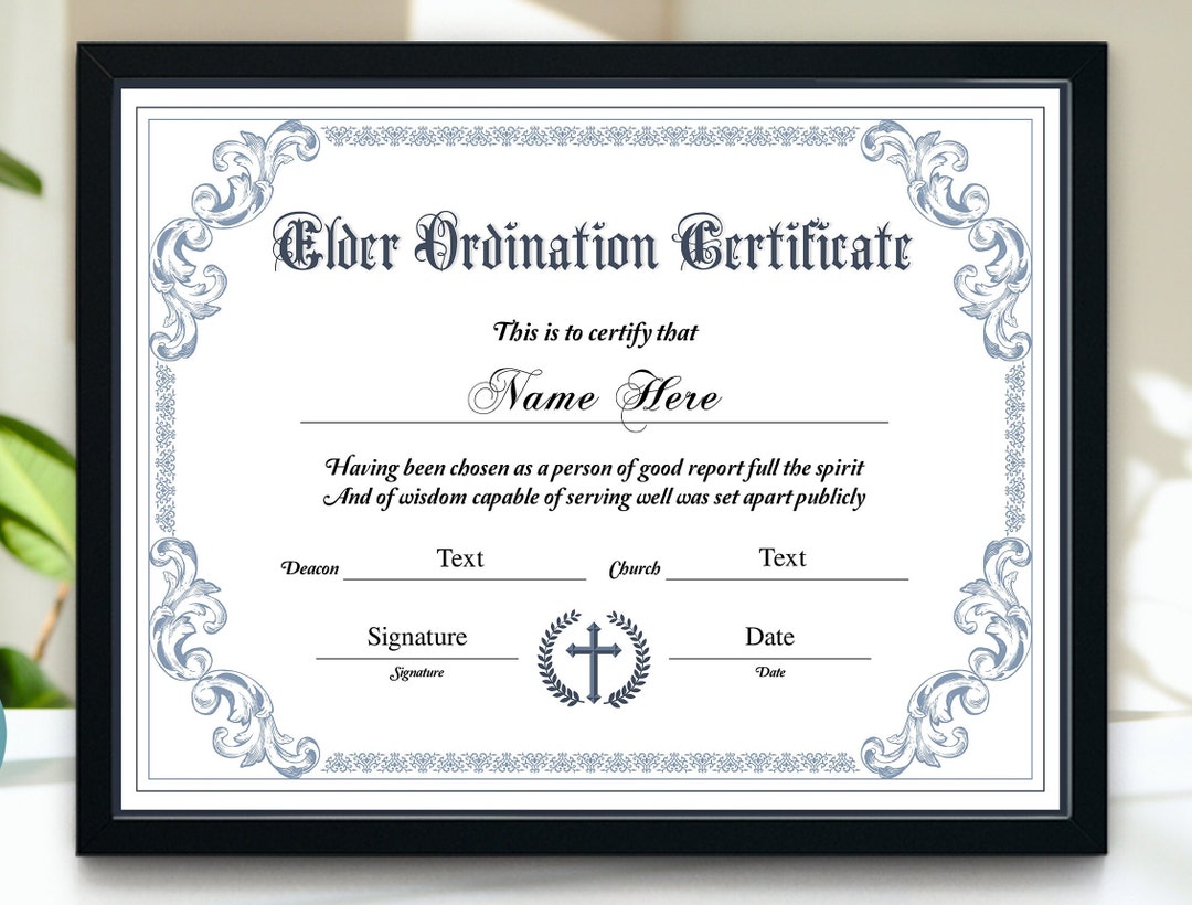 Editable Ordained Elder Certificate Template Printable Vintage Etsy