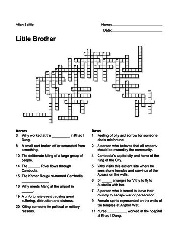 Novel Vocabulary Crossword Puzzle Little Brother Crossword Labs