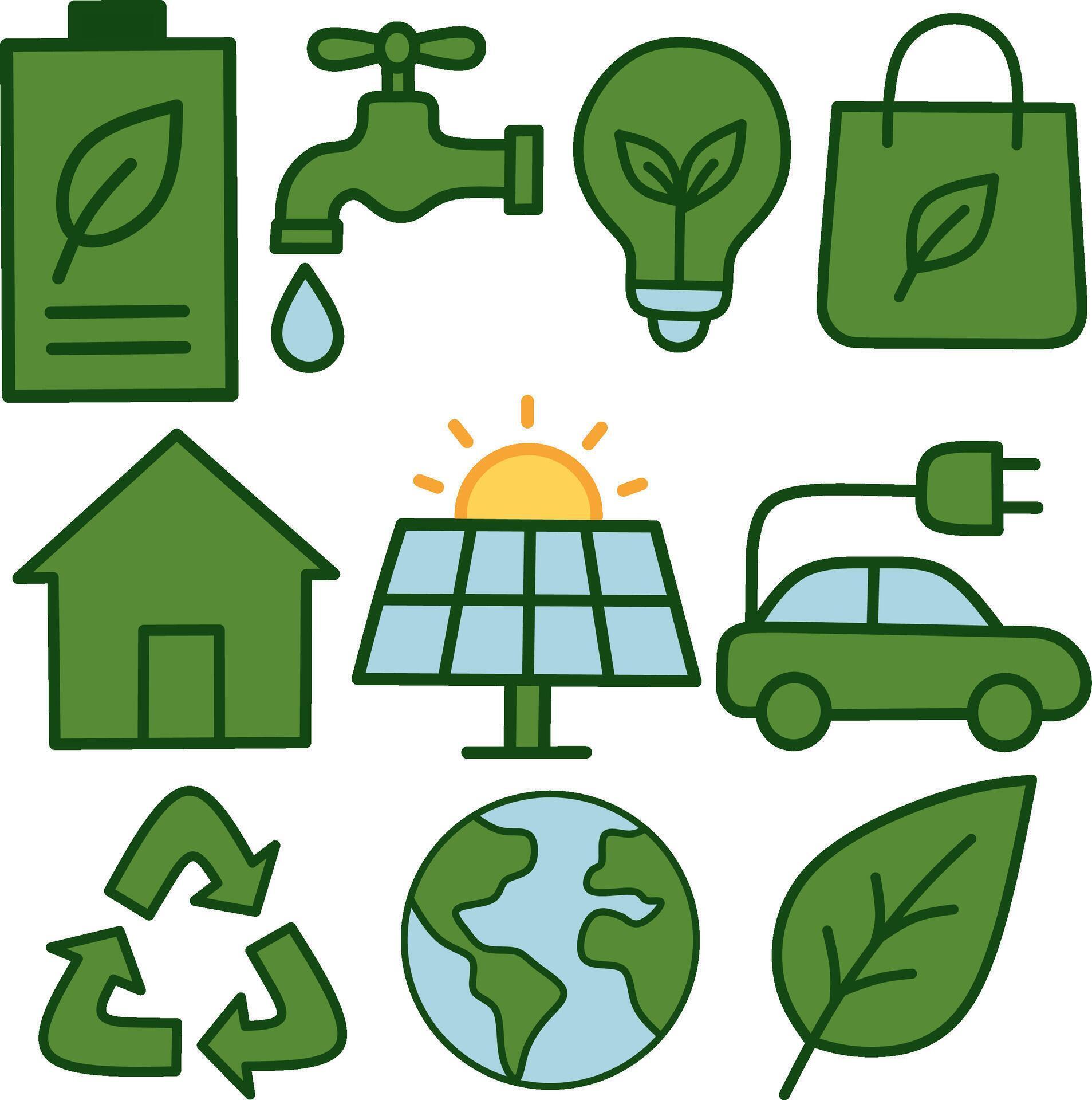 Eco and sustainability icons water tap eco light bulb reusable bag
