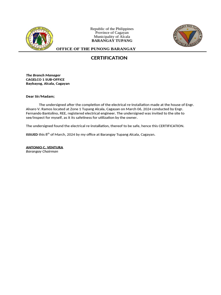 Final Electrical Inspection Certification Form (Philippines) YouTube