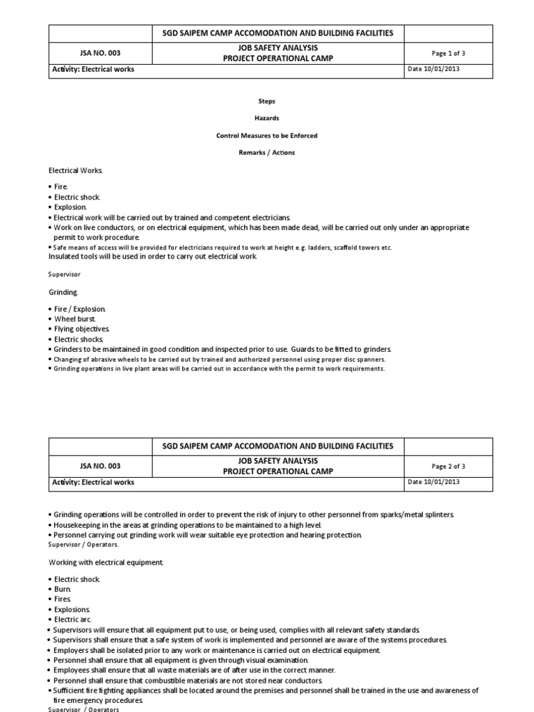 Here are some of the images for Electrical Jsa Template that we found in our website database.