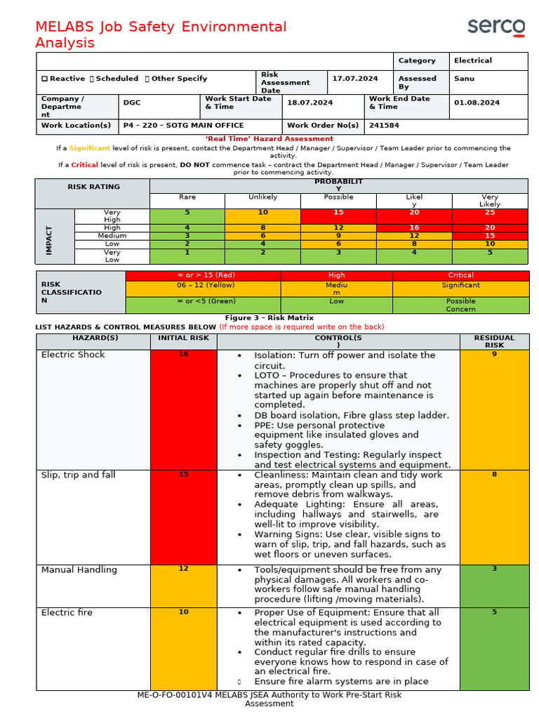 JSA Risk Assessment ELV Systems (Electrical) PDF Risk Risk