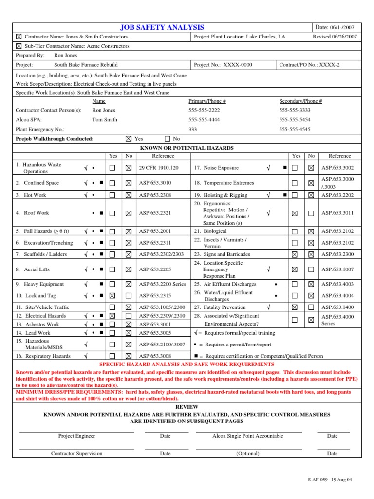 Job Safety Analysis (JSA) Template In Word And Pdf Formats 60% OFF