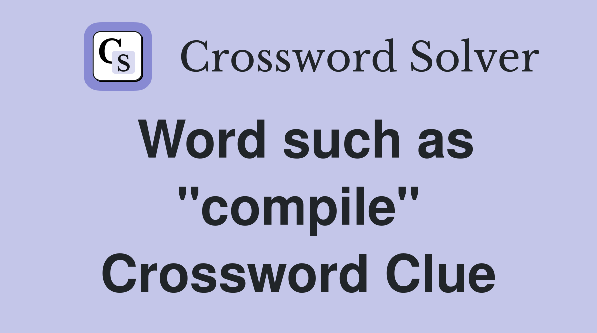 Word such as quot compile quot Crossword Clue Answers Crossword Solver