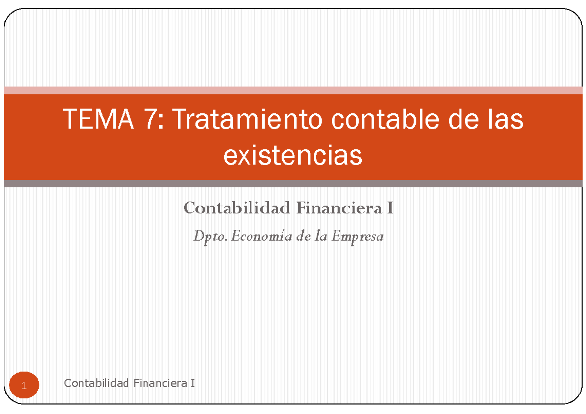Tema 7 Tratamiento contable de las existencias Contabilidad