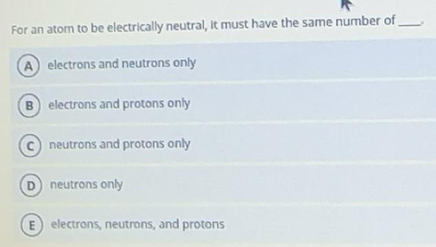 Solved: For an atom to be electrically neutral it must have the same