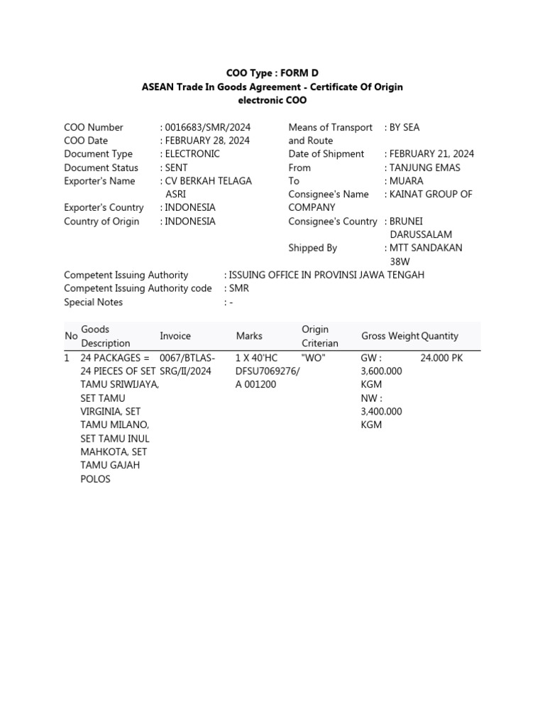Electronic Certificate Of Origin