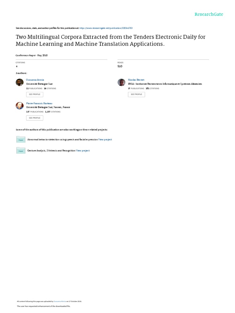 Two Multilingual Corpora Extracted From The Tenders Electronic Daily
