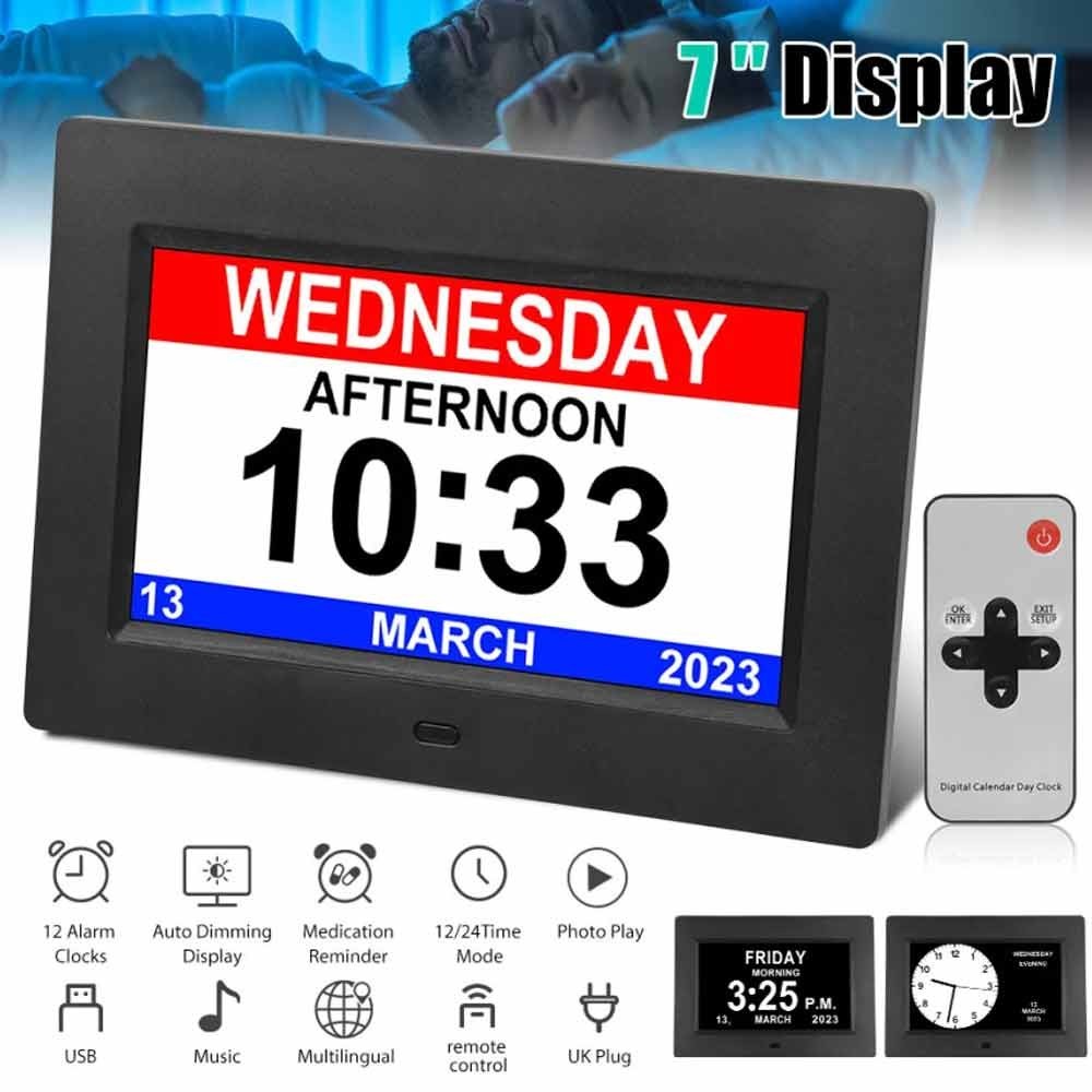Digital Calendar Alarm Day Clock With 8 quot Large Screen Display Am Pm 5