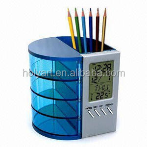 LCD Display Electronic Digital Desk Table Calendar Pencil Holder Date