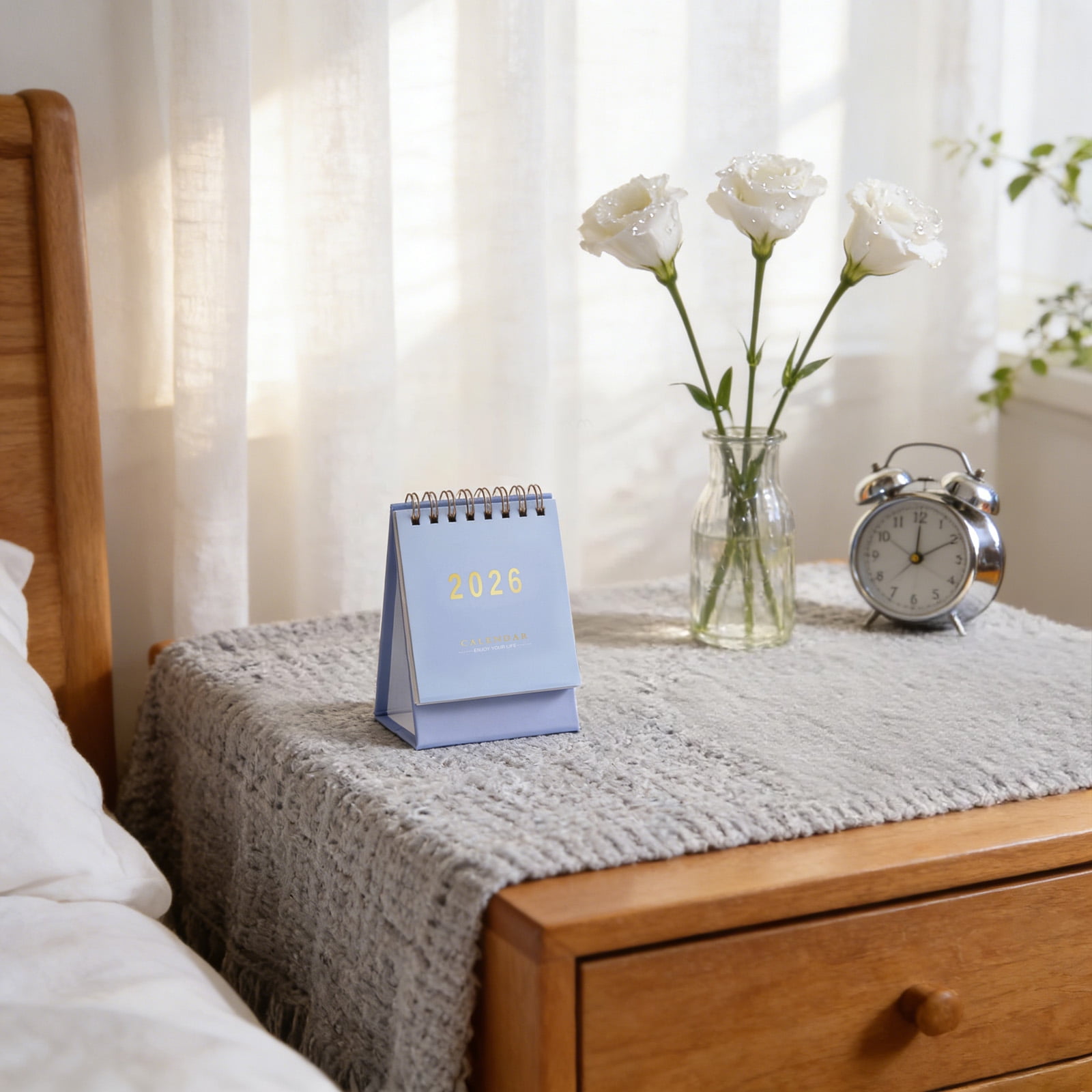 Qonioi 2026 Mini Desktop Calendar with Notepad Cute Fresh English