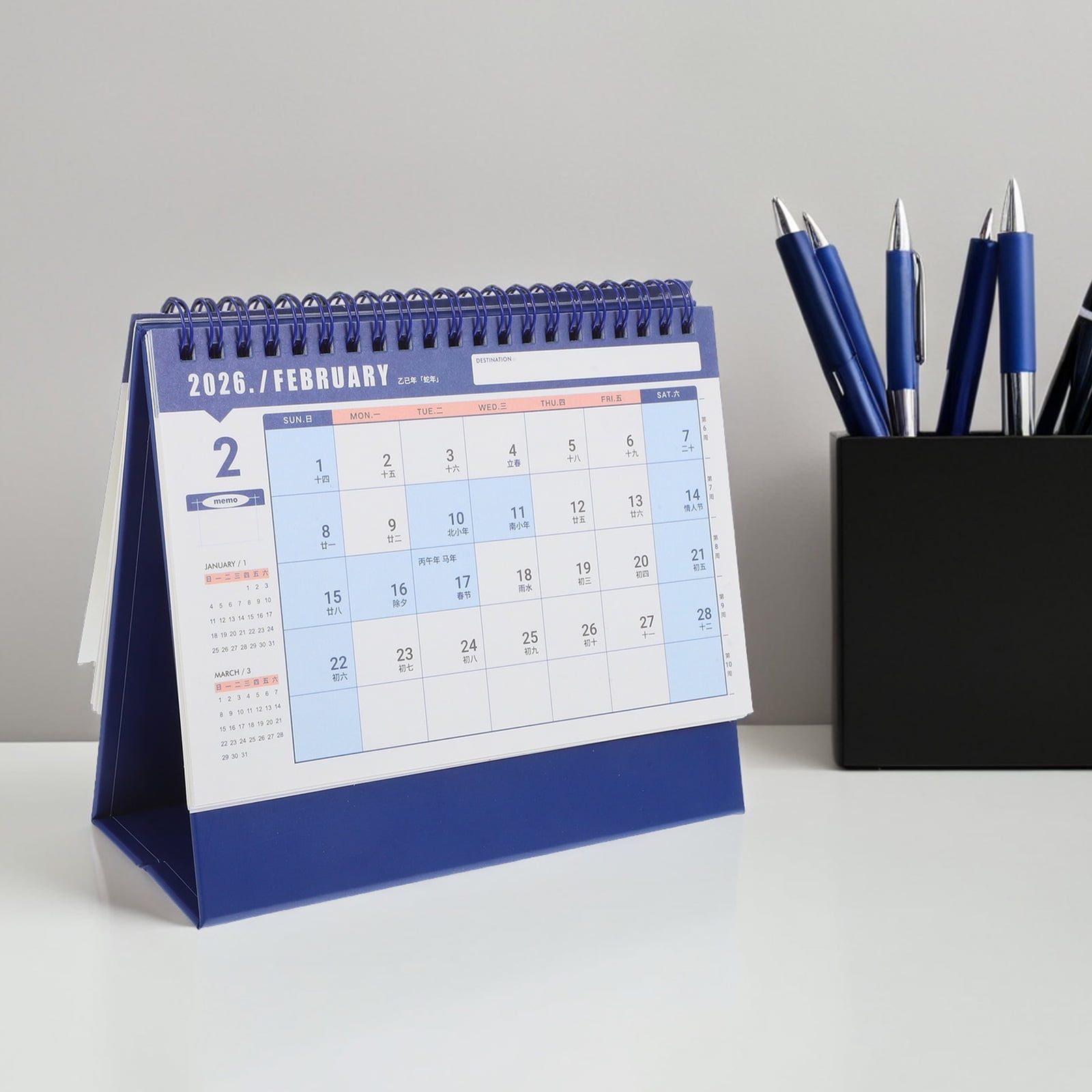 2026 Mini Desktop Calendar with Notepad Cute Fresh English Version