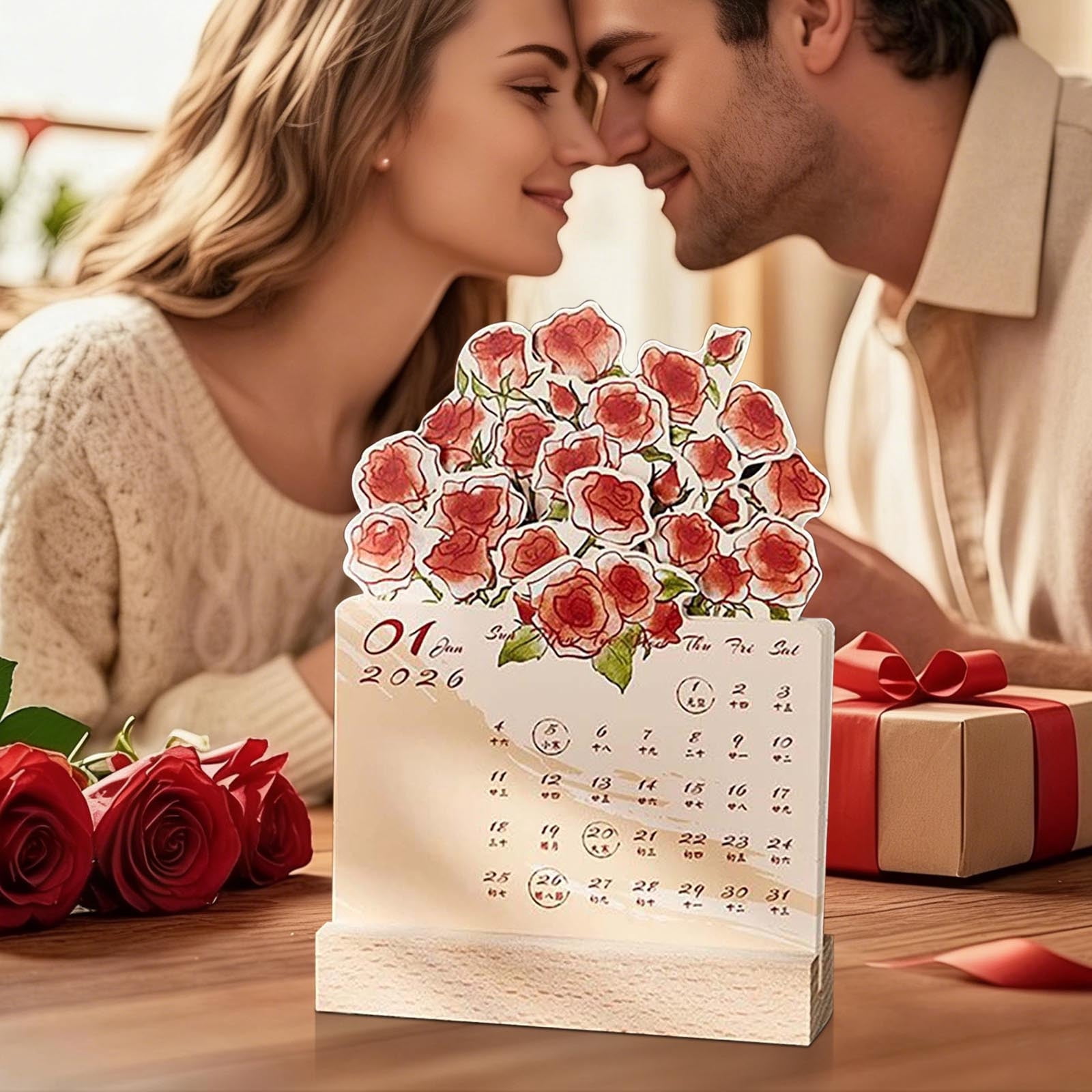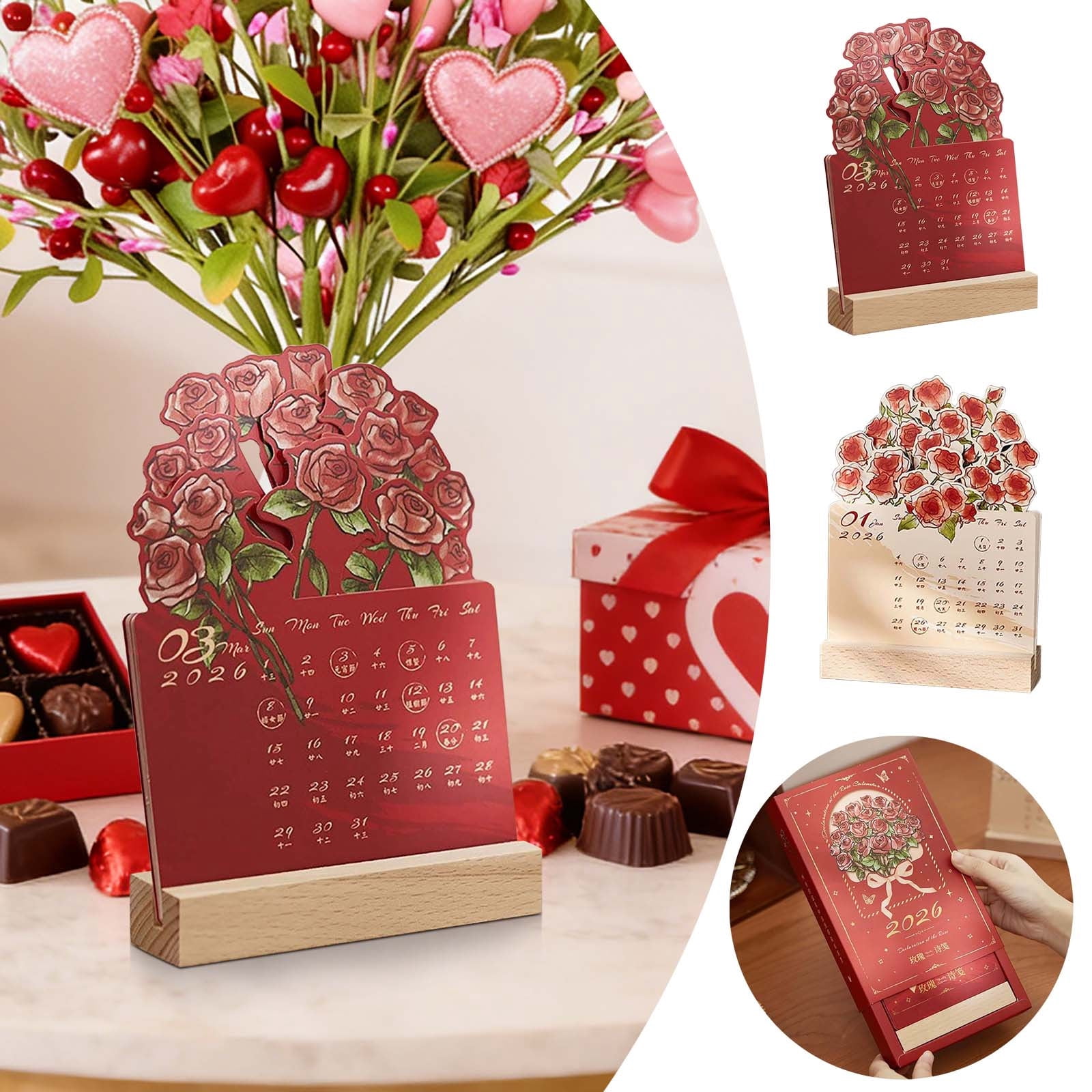 Desktop Calendar Wooden Rose Art Organizer 2026 Monthly Planner