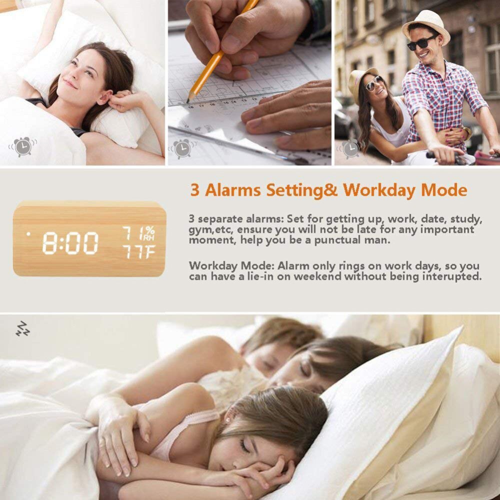 JINSUN Antique Style Wood Clock LED Display Bamboo Clock Digital
