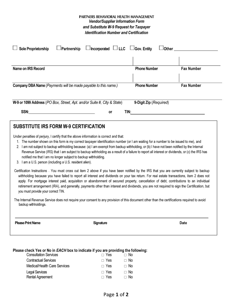 Fillable Online Partners Vendor Electronic Funds Transfer Form Fax