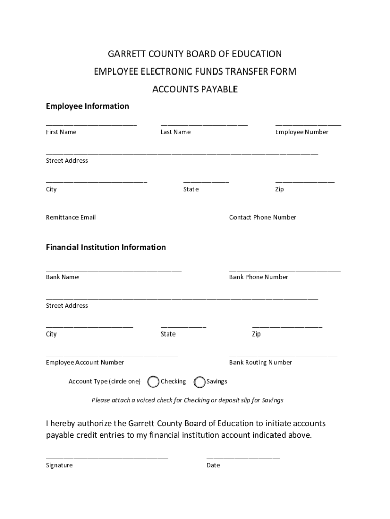 Generic Electronic Funds Transfer Form Template Employee Onboarding