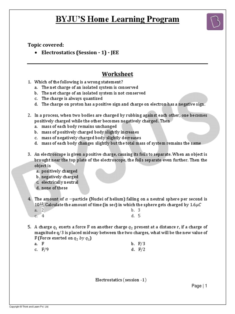 Electrostatics Worksheet With Answers Printable Calendars AT A GLANCE