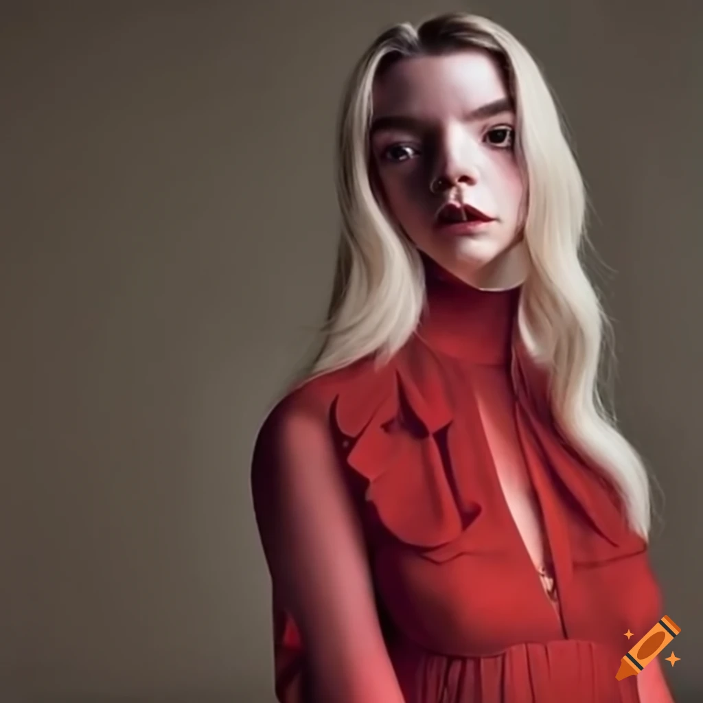 Anya taylor joy demonstrating poise and elegance in fiery red attire on