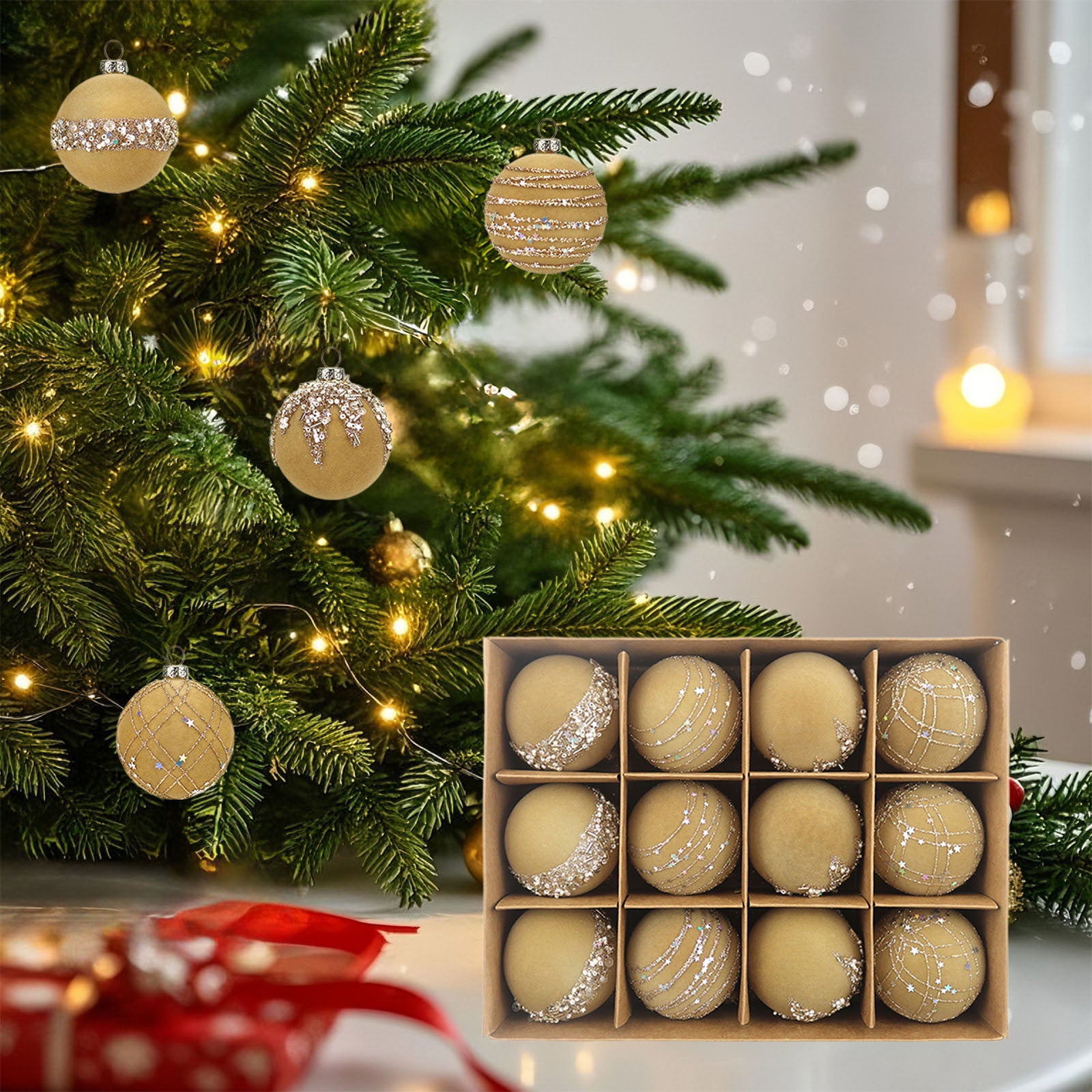 Classic Velvet Christmas Balls Set Diamond Patterned Flocked