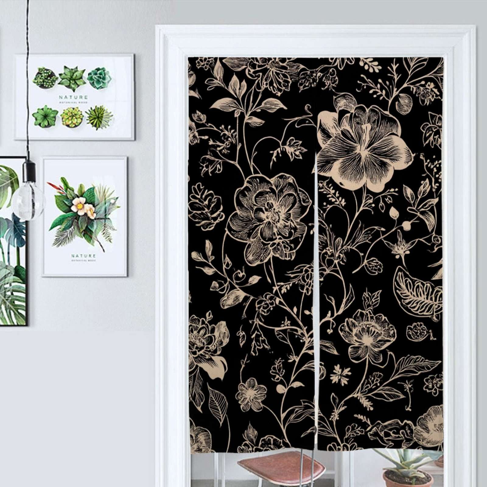 Elegant Floral Black Background Design Door Curtain Nordic Living Room