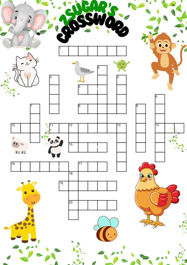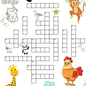 Animal themed Crossword Puzzle Fun and Educational Puzzle Game for