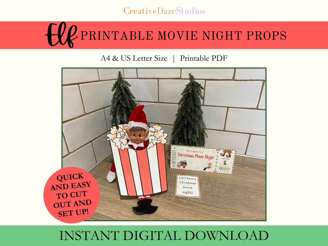 Elf on the Shelf Christmas Movie Night Free DIY Props