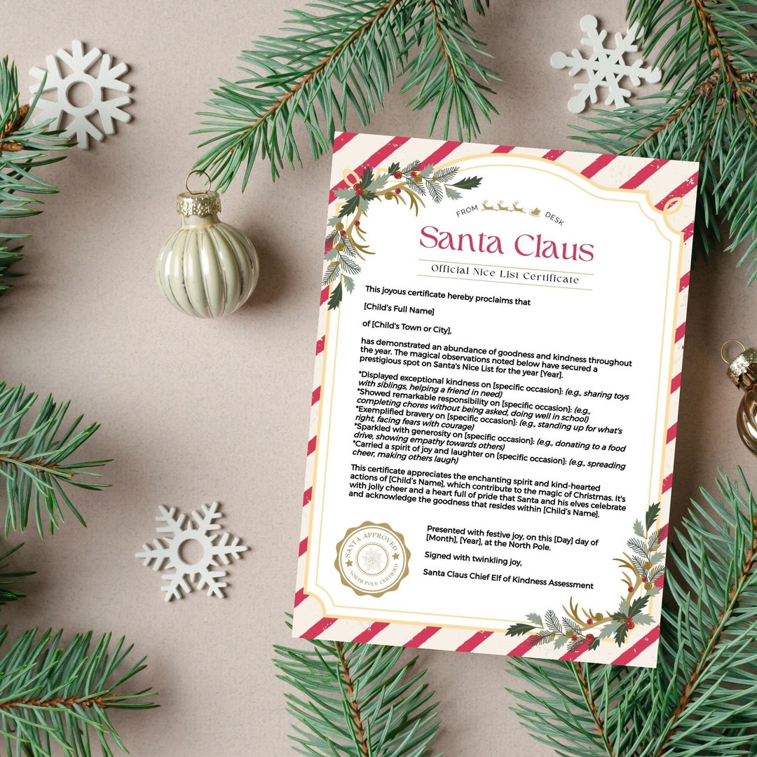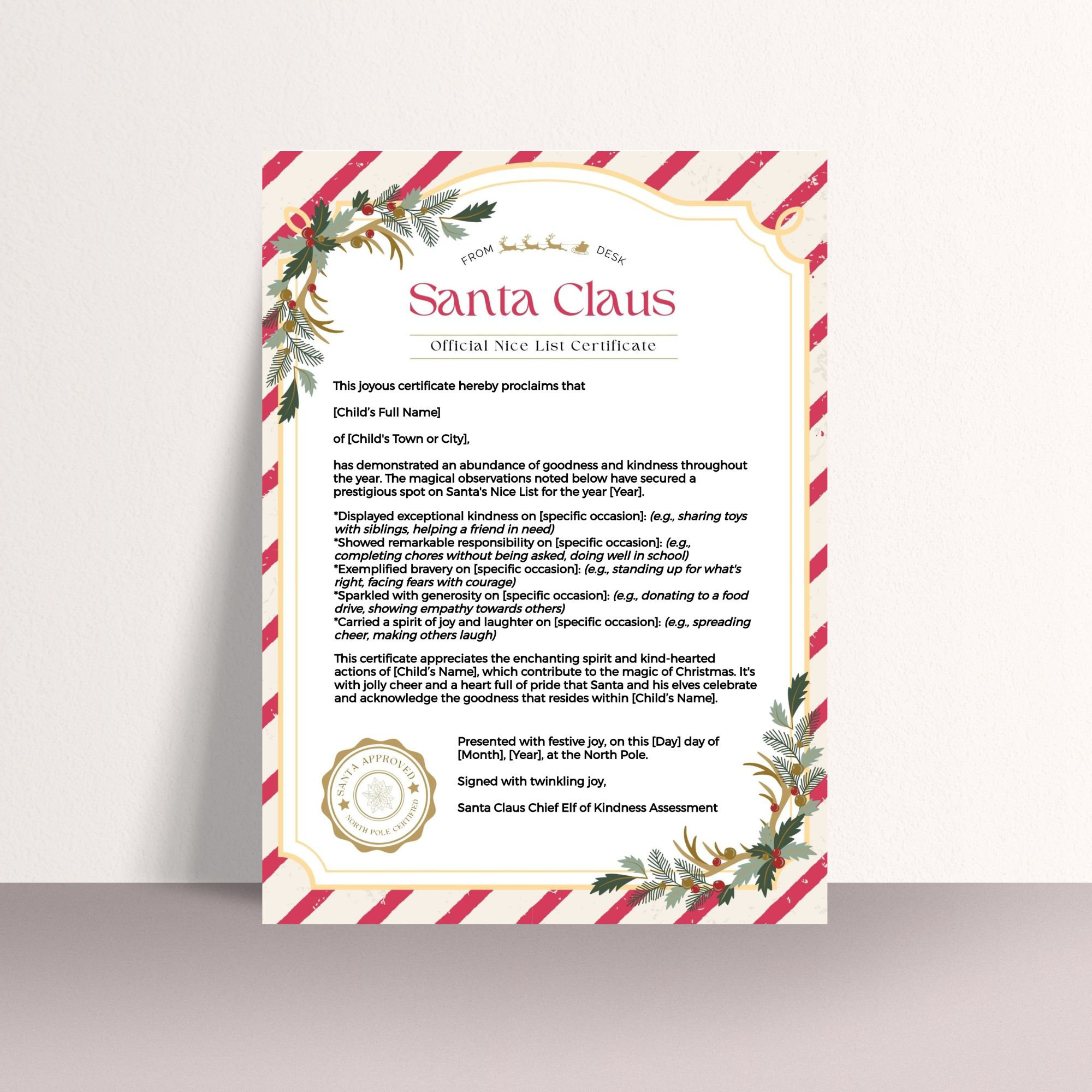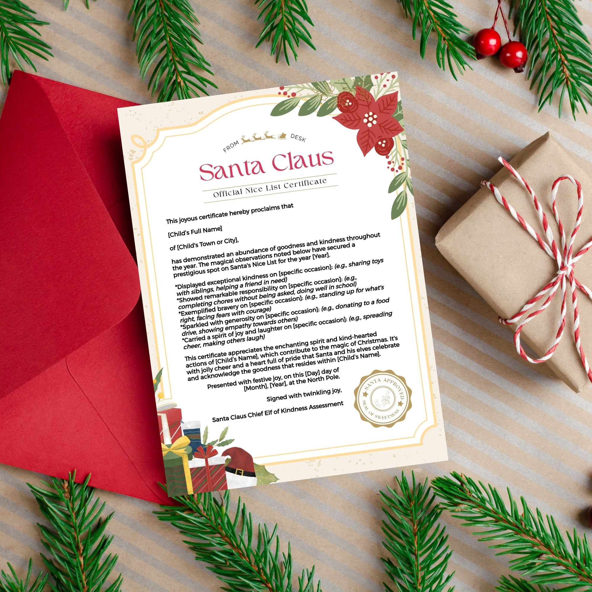EDITABLE Nice List Certificate Printable Santa s Official Document