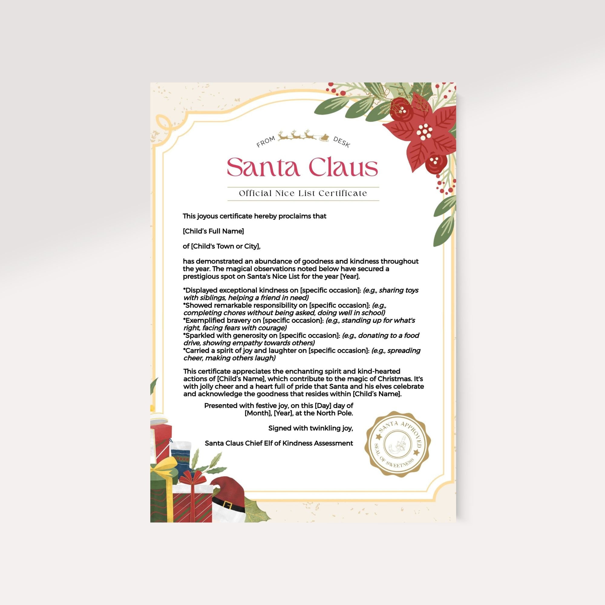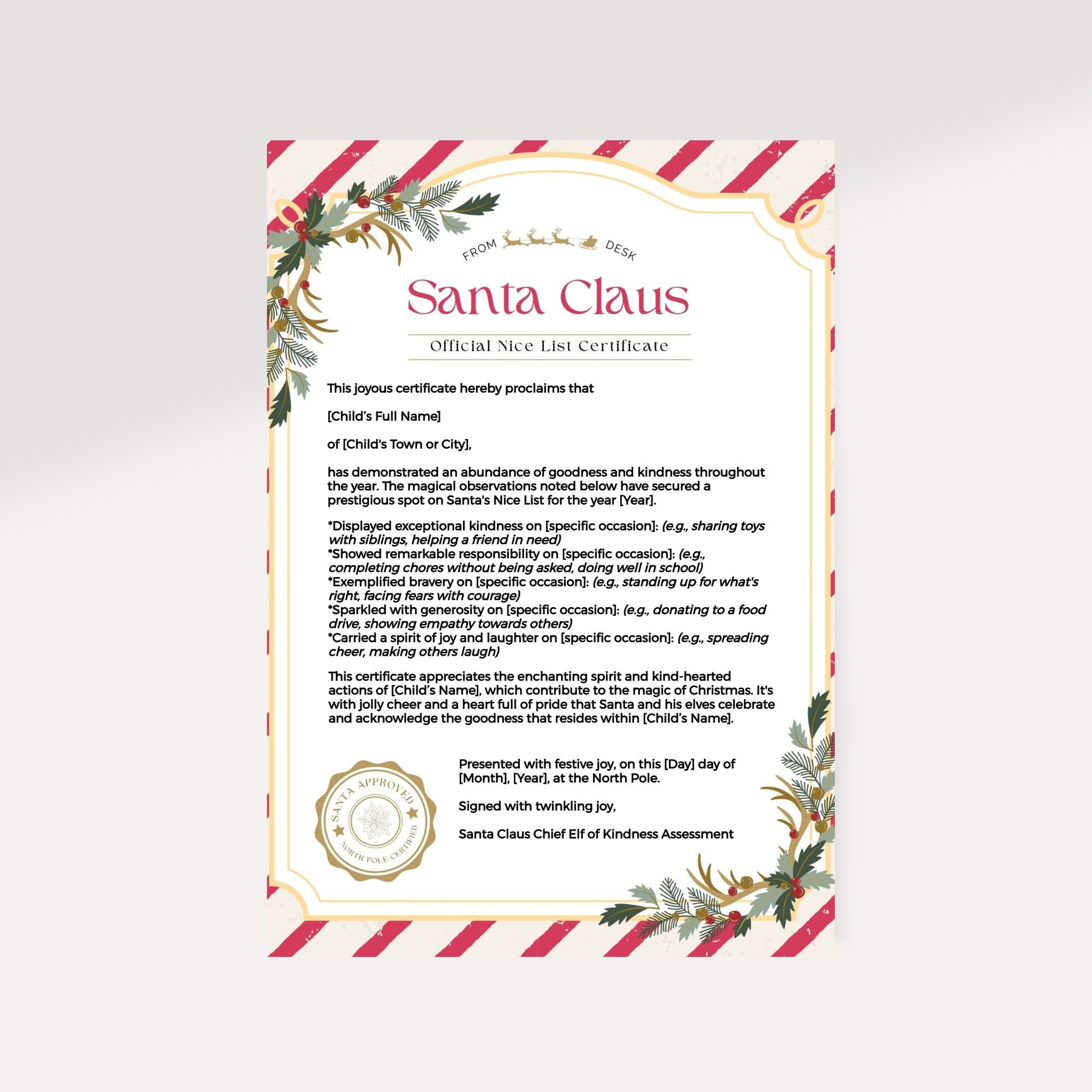 EDITABLE Nice List Certificate Printable Santa s Official Document Elf