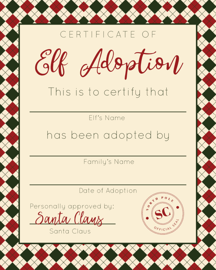 FREE Elf Adoption Certificate for Your Elf on the Shelf Make Life Lovely