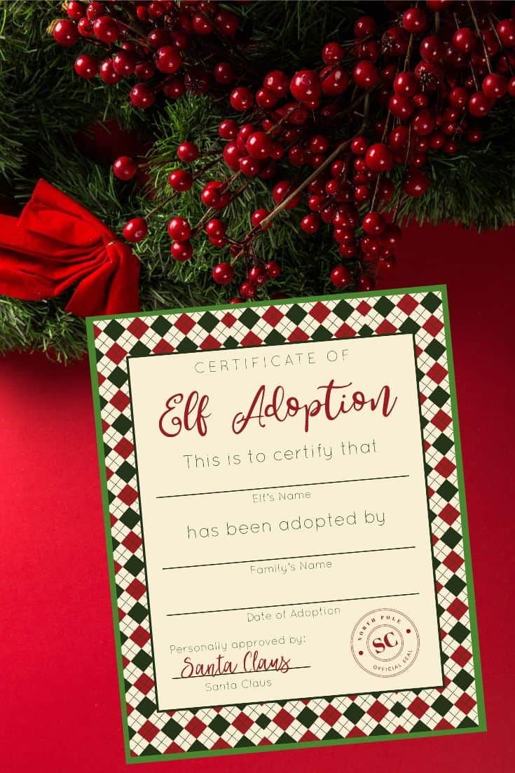 Christmas Elf ADOPTION CERTIFICATE: Free Printable A Little Pinch of