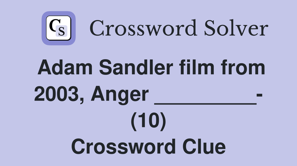 Adam Sandler film from 2003 Anger (10) Crossword Clue