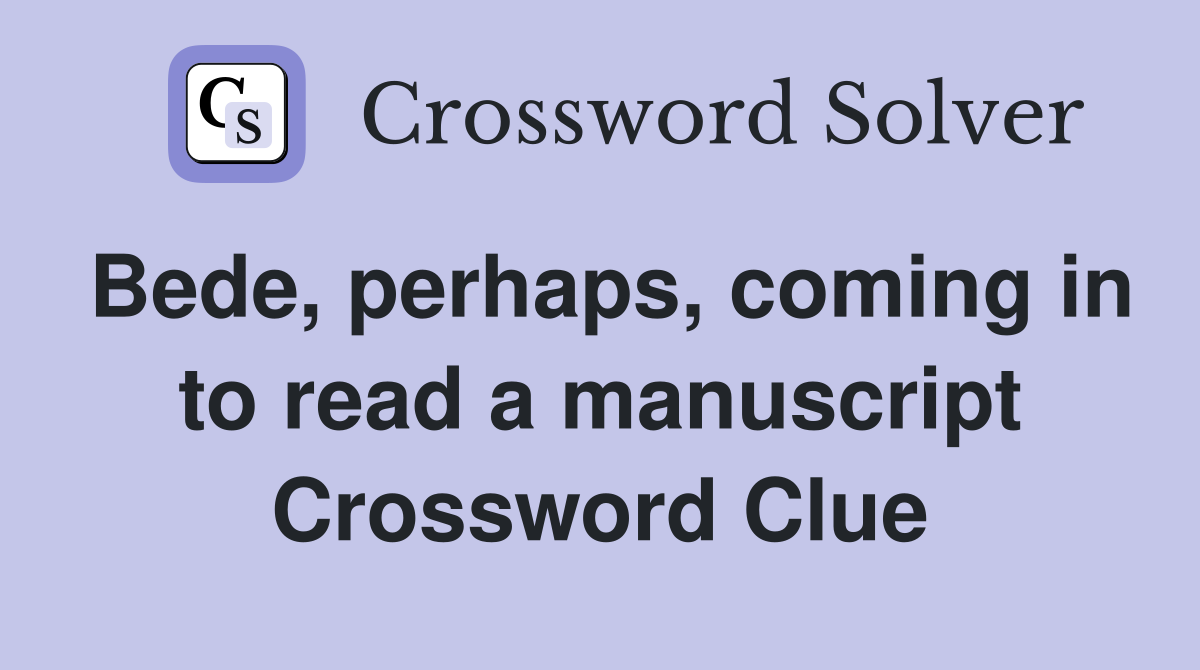 Bede perhaps coming in to read a manuscript Crossword Clue Answers