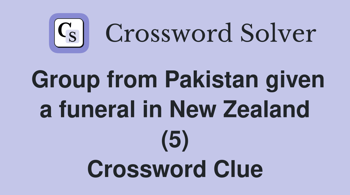 Group from Pakistan given a funeral in New Zealand (5) Crossword Clue