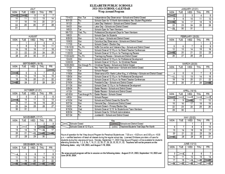 Elizabeth Public Schools 2023 2024 Calendar PDF Entertainment