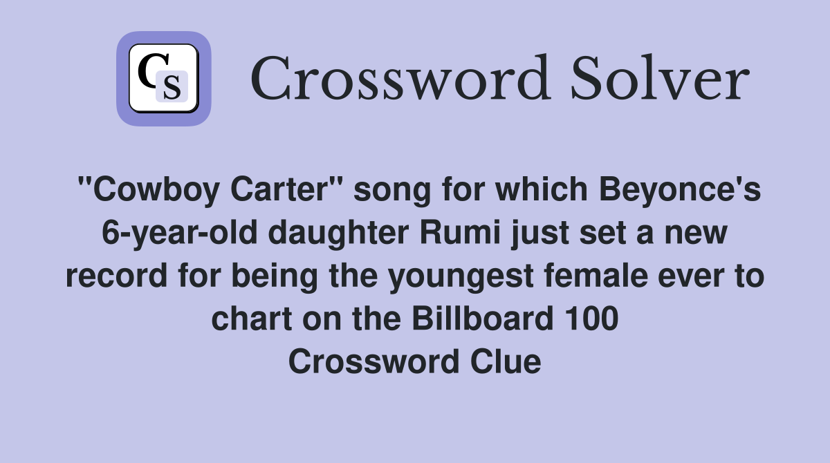 quot Cowboy Carter quot song for which Beyonce #39 s 6 year old daughter Rumi just