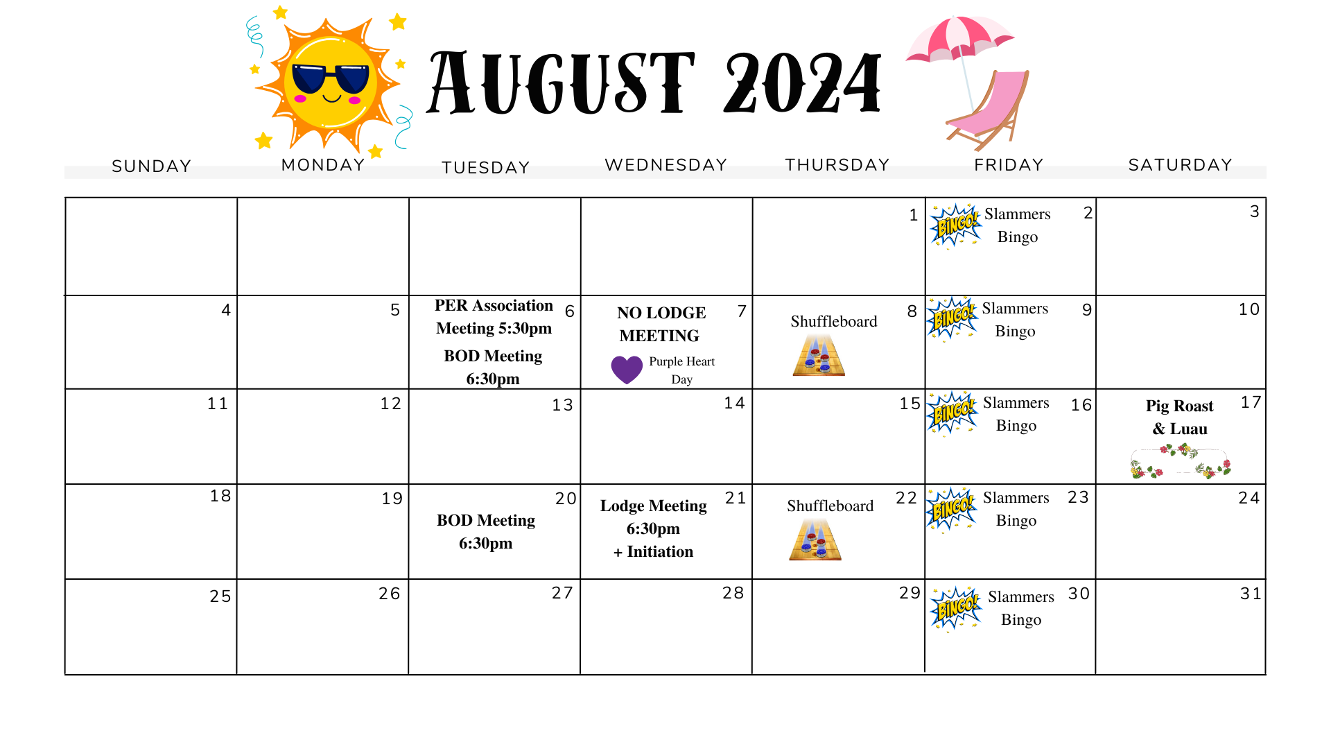Elks Lodge Calendar