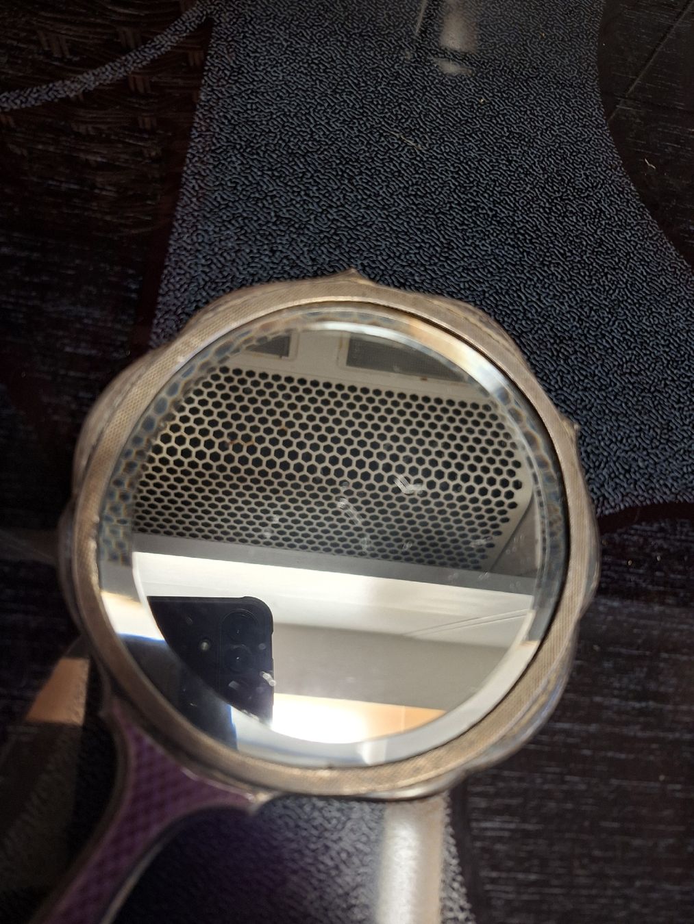Miroir à main vintage en émail rose guilloché (Gebraucht) in Evilard