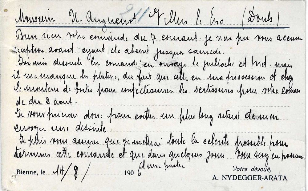 Werbekarte Fabrique de cadrans en émail Nydegger Bienne (Gebraucht