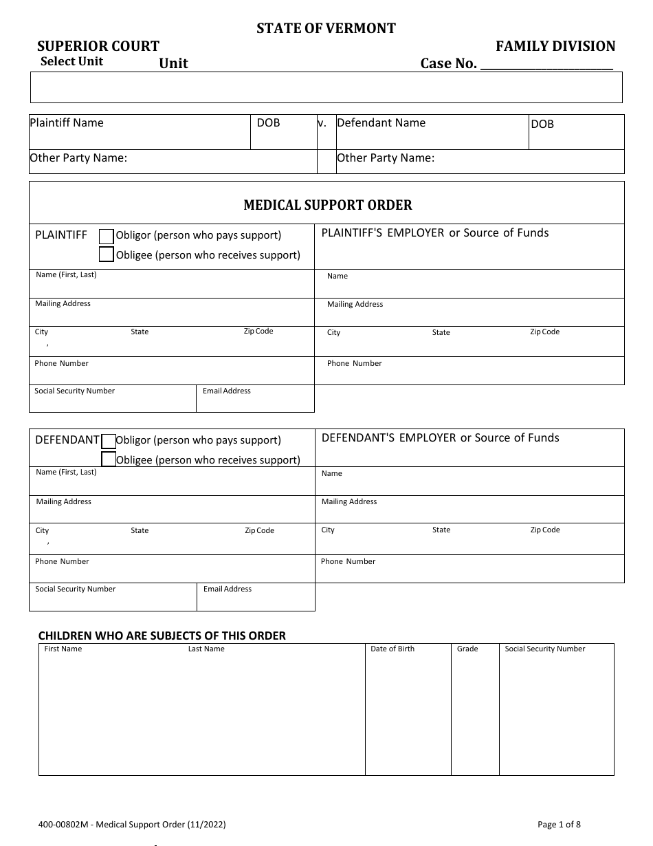 Form 400 00802M Download Fillable PDF or Fill Online Medical Support